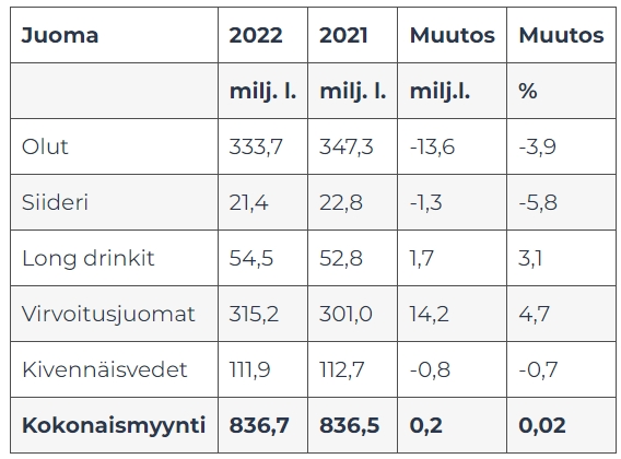 • Alkoholijuomien myynti laski yli 3 prosenttia