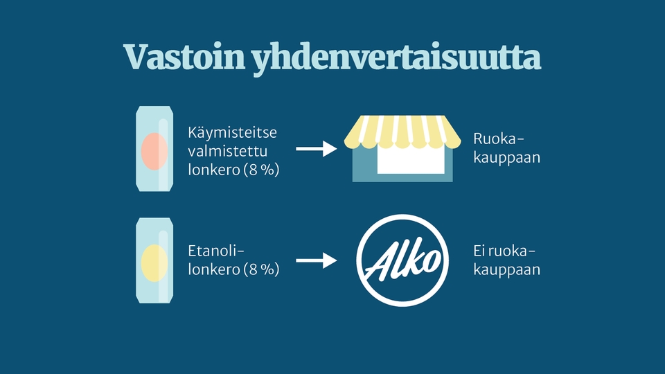 Hallituksen esityksessä uudeksi alkoholilaiksi käymisteitse valmistetut lonkerot ja muut alkoholijuomasekoitukset aina 8 tilavuusprosenttiin asti siirtyisivät myyntiin ruokakauppaan, mutta toisella tavalla valmistetut samanvahvuiset lonkerot jäisivät Alkon myyntiin.